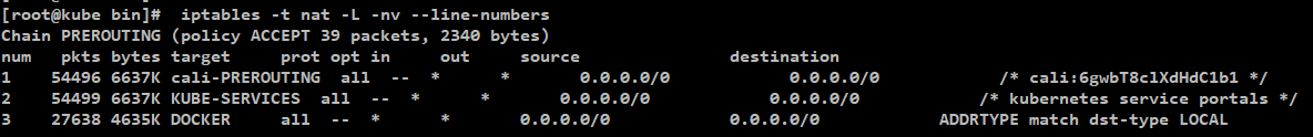 PREROUTING에 1번이 cali-PREROUTING 인데