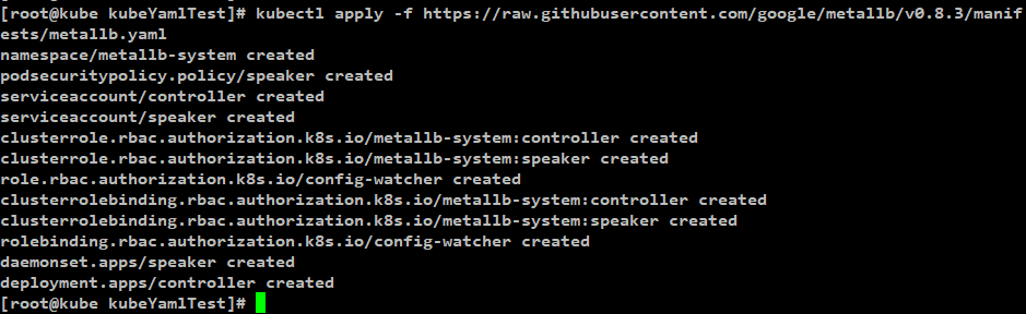 kubectl apply -f https://raw.githubusercontent.com/metallb/metallb/v0.9.5/manifests/namespace.yaml