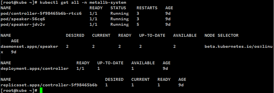 kubectl apply -f https://raw.githubusercontent.com/metallb/metallb/v0.9.5/manifests/metallb.yaml