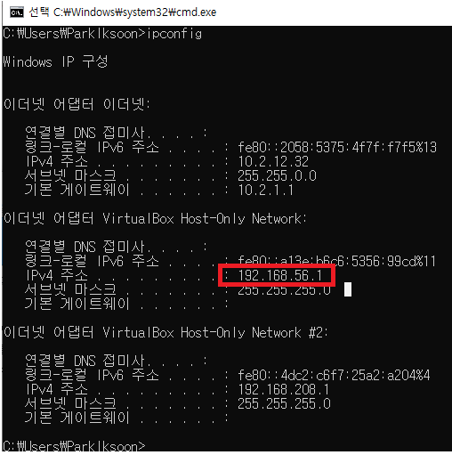 해당 ip는 Local PC의 VirtualBox에 해당하는 ip