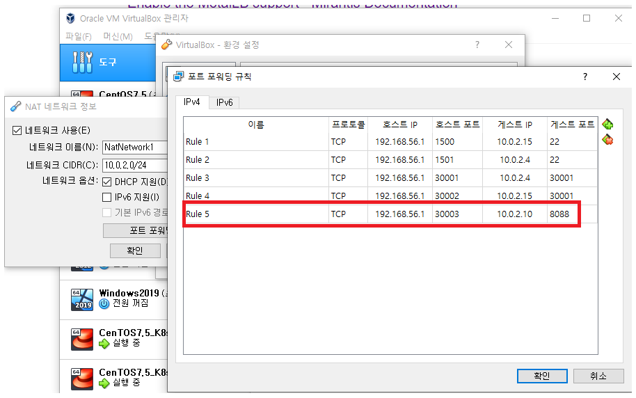 을 192.168.56.1 : 30003으로 포트포워딩 설정