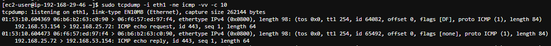 sudo tcpdump -i enia6653479892 -ne icmp -vv -c 10
