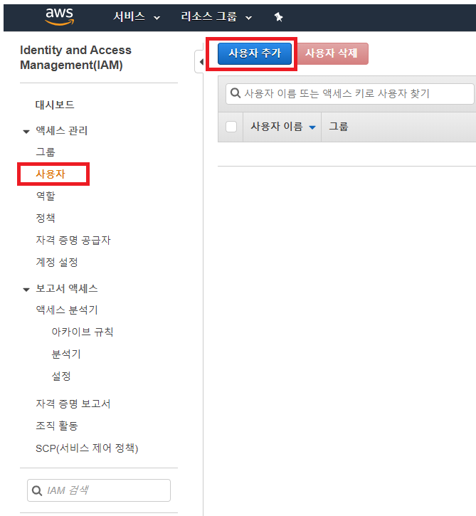 2.2. 왼쪽 대시보드에서 액세스 관리 > 사용자 클릭