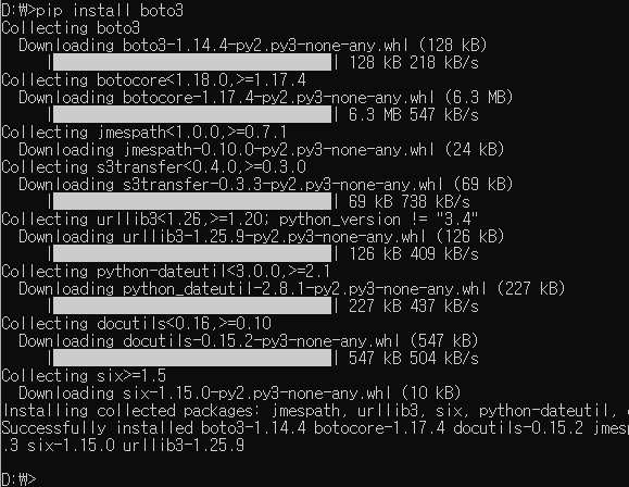 %python_home%\Lib\site-packages 폴더에 boto 폴더 확인 가능