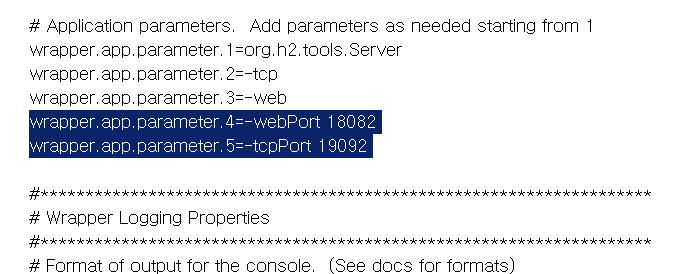 ~\h2\service\wrapper.conf 파일 내용 추가