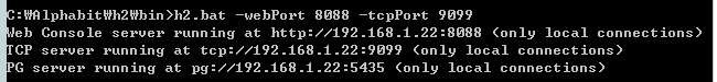 h2.bat -webPort 8088 -tcpPort 9099
