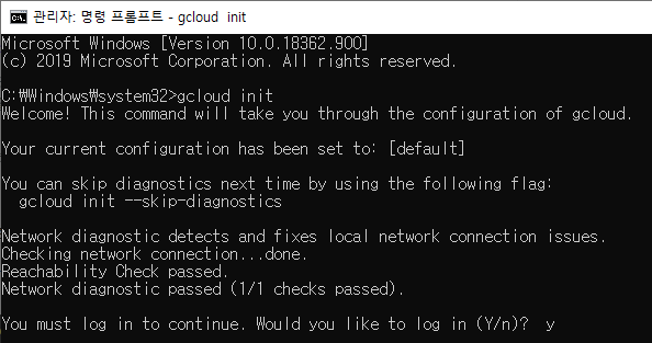 1.1.3. gcloud init 명령 실행