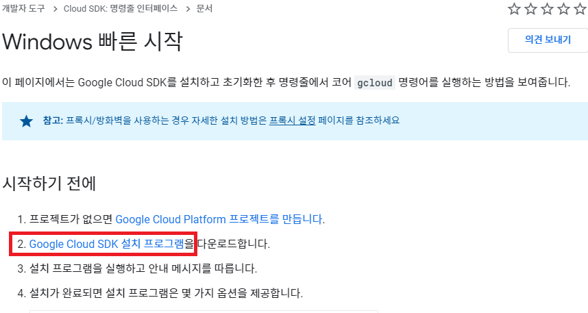 dowload 링크 : https://cloud.google.com/sdk/docs/quickstart-windows