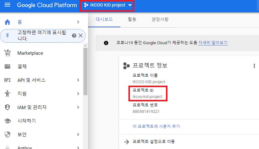 5.1.2. 프로젝트 정보에서 프로젝트 ID 확인