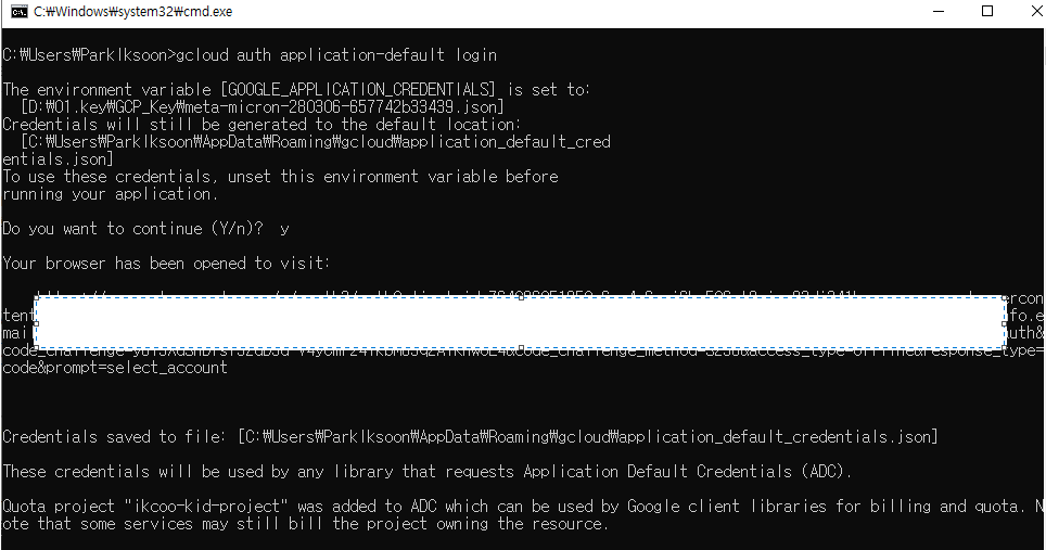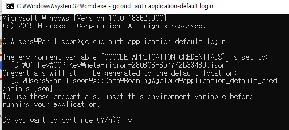 3.2. cmd에서 gcloud auth application-default login 명령 수행