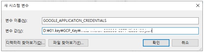 환경 변수 이름 : GOOGLE_APPLICATION_CREDENTIALS