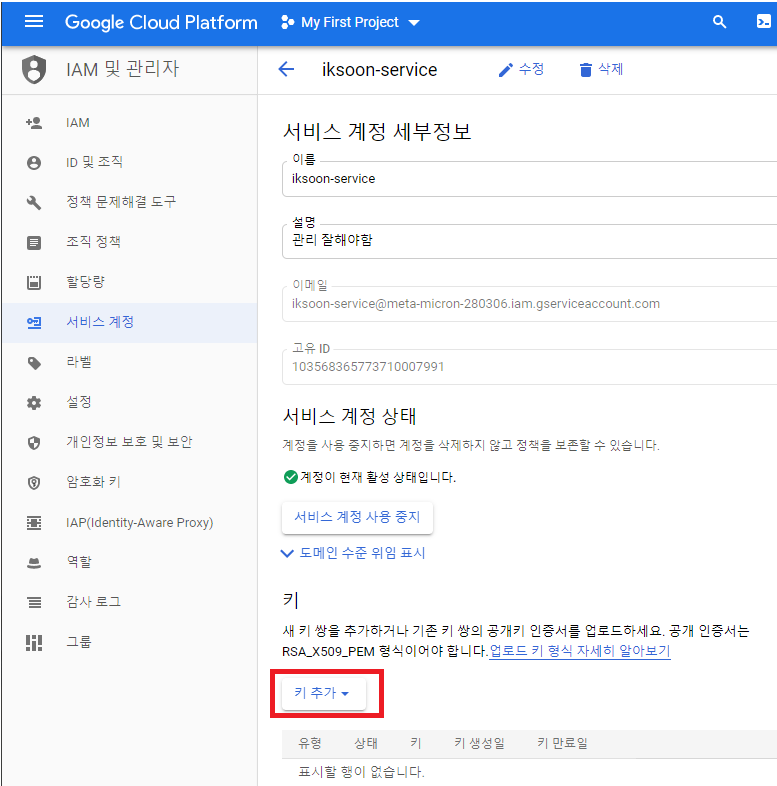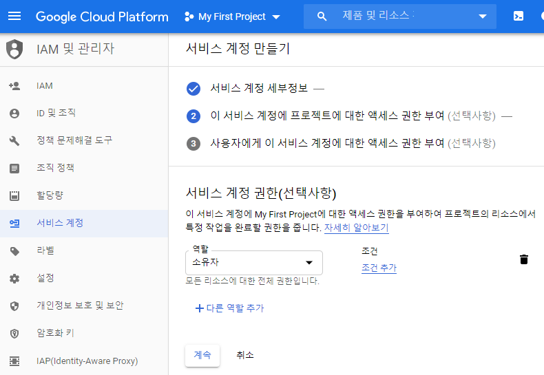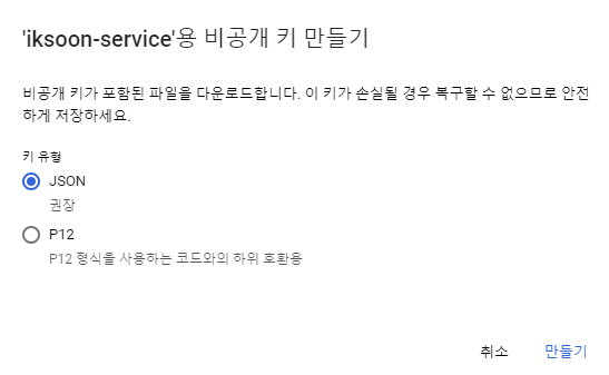 3. 서비스 계정 키 연결