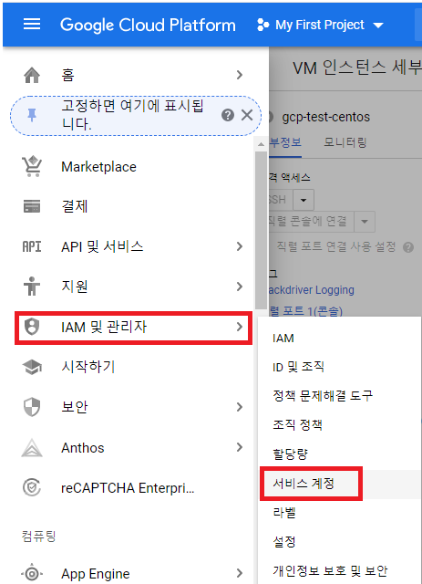 2.1. GCP에서 IAM 및 관리자 > 서비스 계정으로 이동