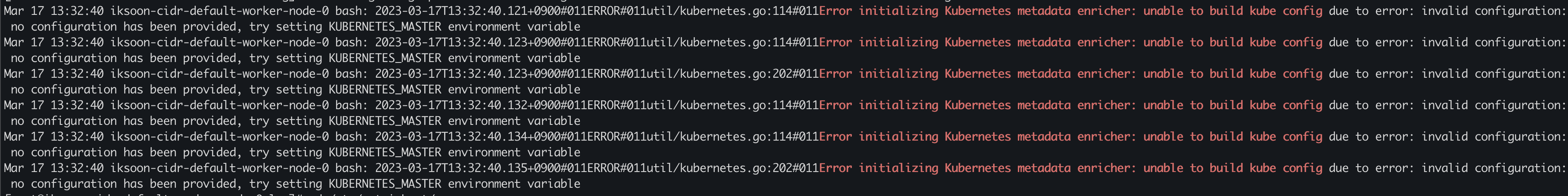 결론 : 해당 에러는 단순하게 kubeconfig 환경변수 못찾아서 발생하는 오류고 실제 동작에는 영향이 없음.