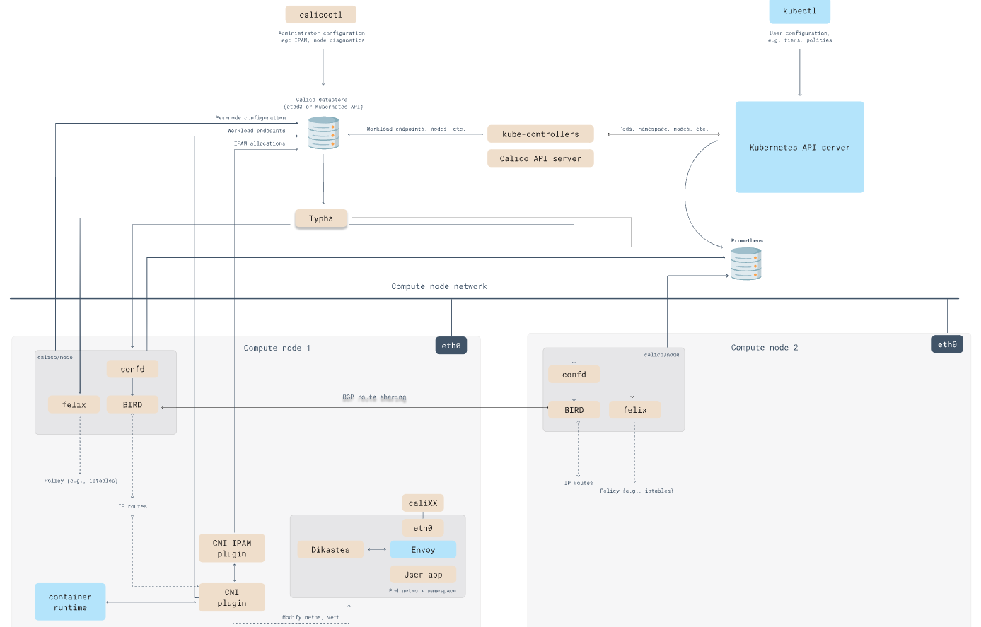 - workloadendpoint controller: watches for changes to pod labels and updates Calico workload endpoints.