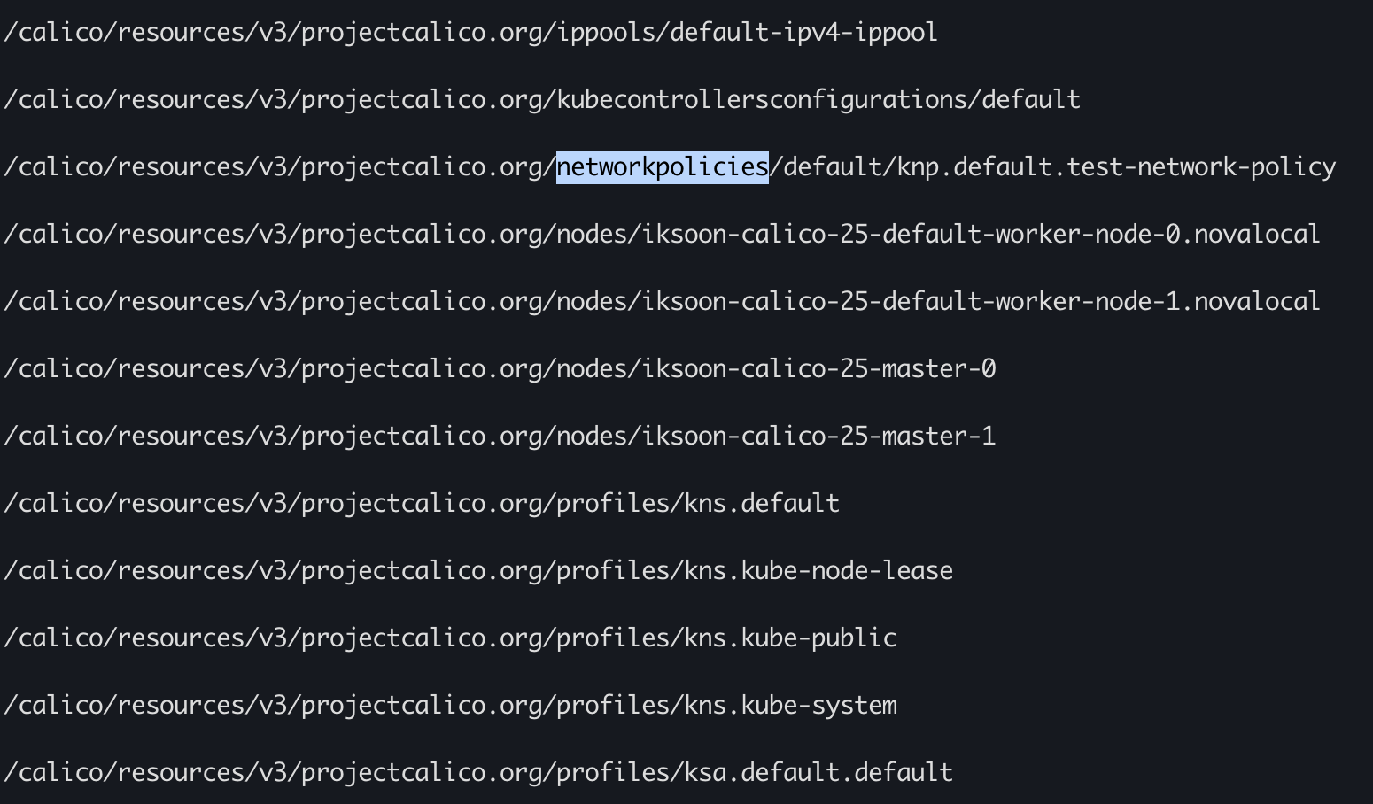 (kubernetes mode로 동작하고 kube-controllers 가 없는 calico는 해당 key가 존재하지 않음.)