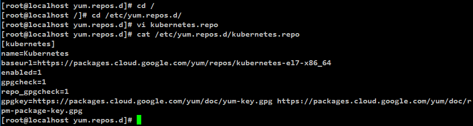 vi /etc/yum.repos.d/kubernetes.repo